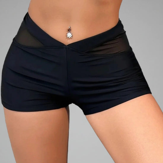 Affirmez votre style et votre confiance avec le Short Pole Dance Chic - "Silhouette". Sa coupe taille haute croisée épouse vos courbes à la perfection pour un effet sculptant flatteur, tandis que ses détails en mesh raffinés ajoutent une touche sensuelle et sophistiquée. Conçu pour accompagner vos mouvements les plus techniques, ce short vous assure maintien, confort et liberté de mouvement grâce à son tissu extensible et respirant.